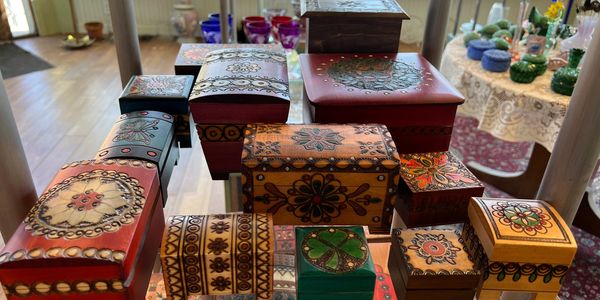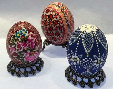 Traditional hand decorated egg shells, each produced in the home of the artist